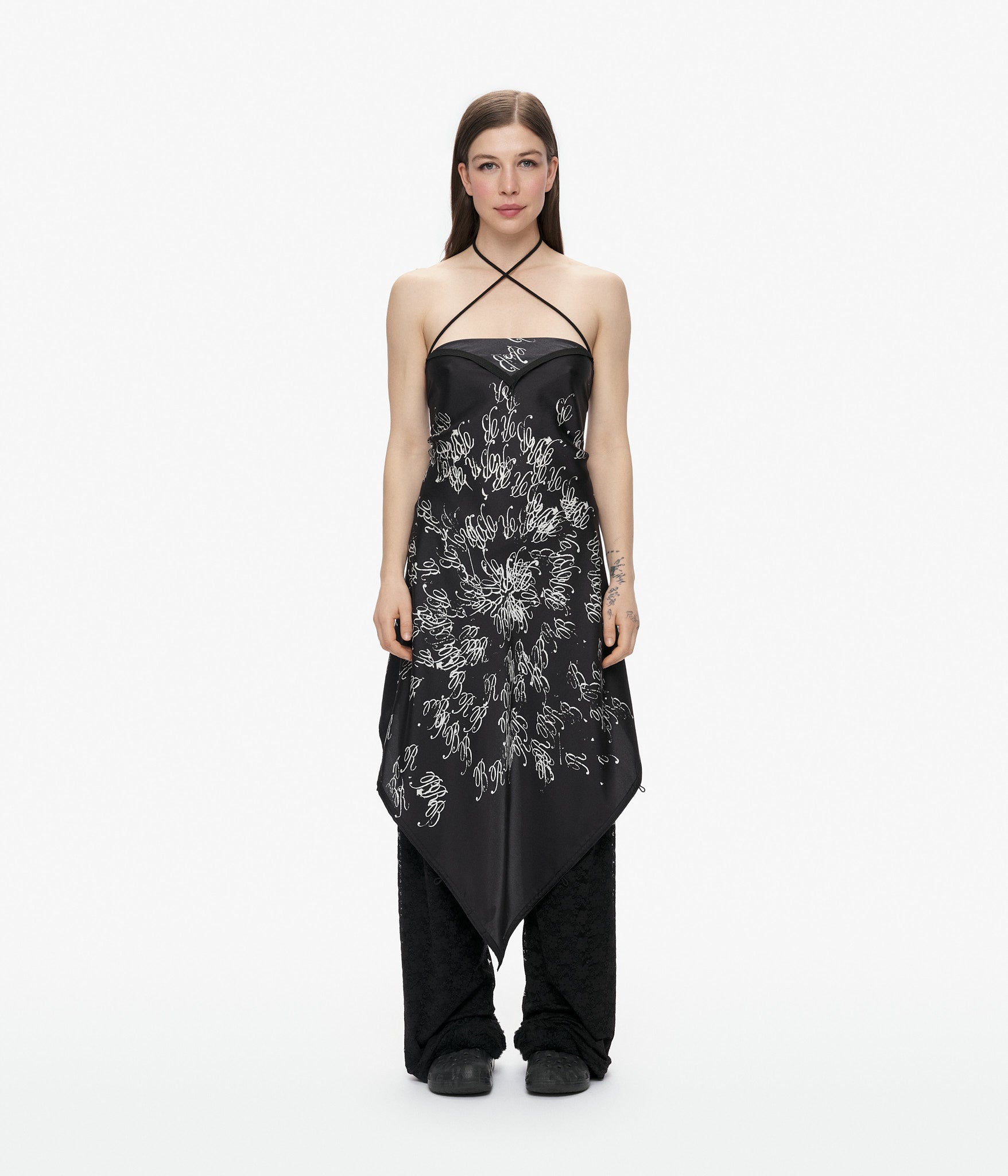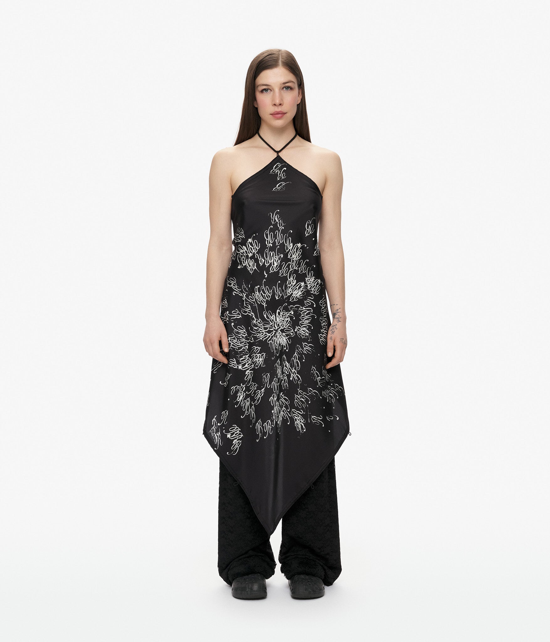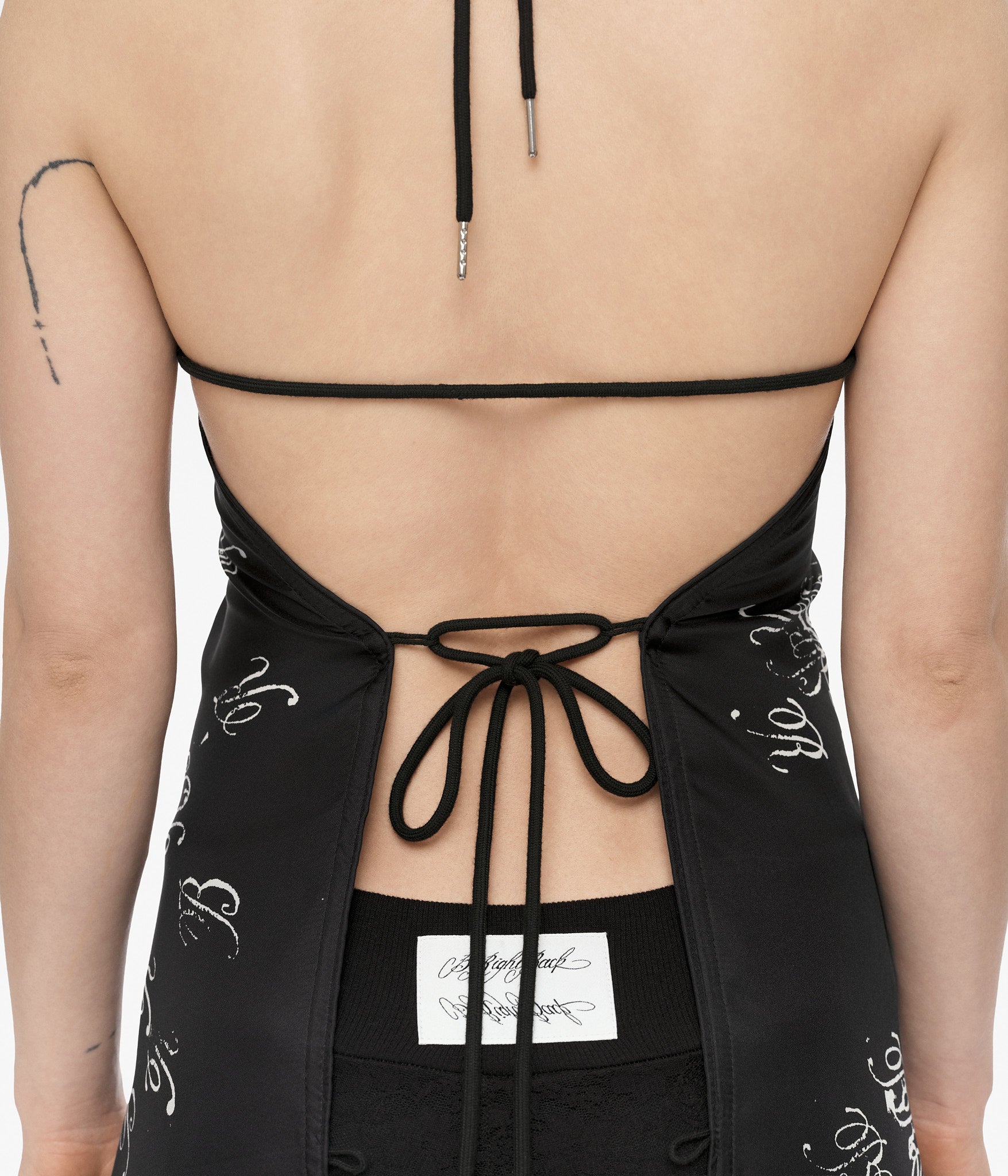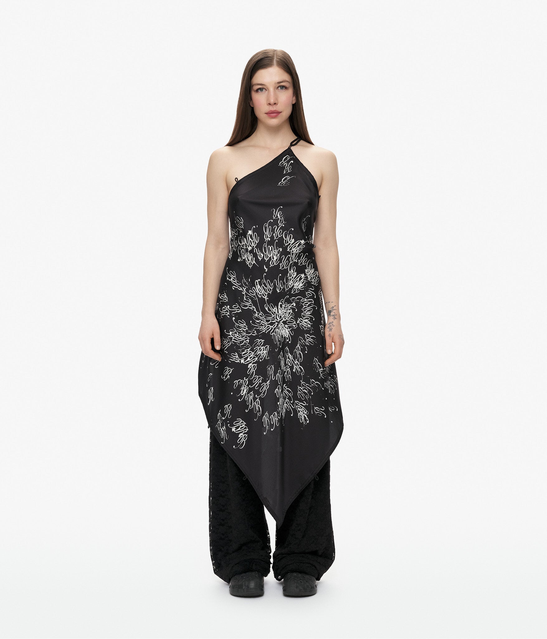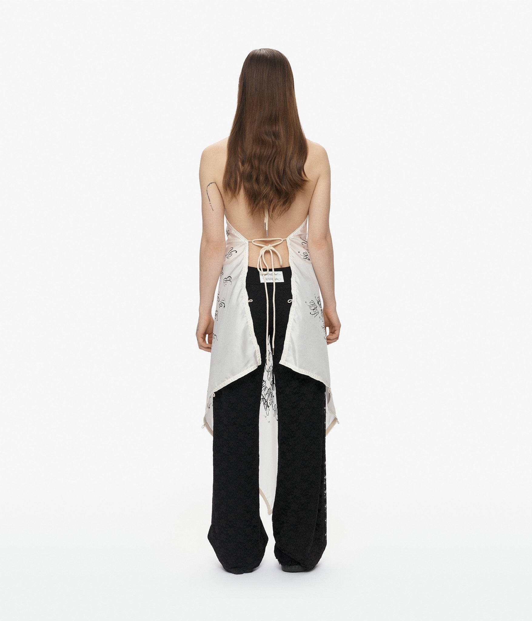 Discover endless styling possibilities with this ingeniously designed silk twill scarf top. Thirteen strategically placed loops invite you to weave, knot, and drape the included cotton cords—each finished with refined steel caps—creating a uniquely personal silhouette every time you wear it. Crafted from luxurious square silk with hand-rolled edges and featuring artwork by Marley Stucci of 6th House, this piece transcends traditional fashion boundaries.