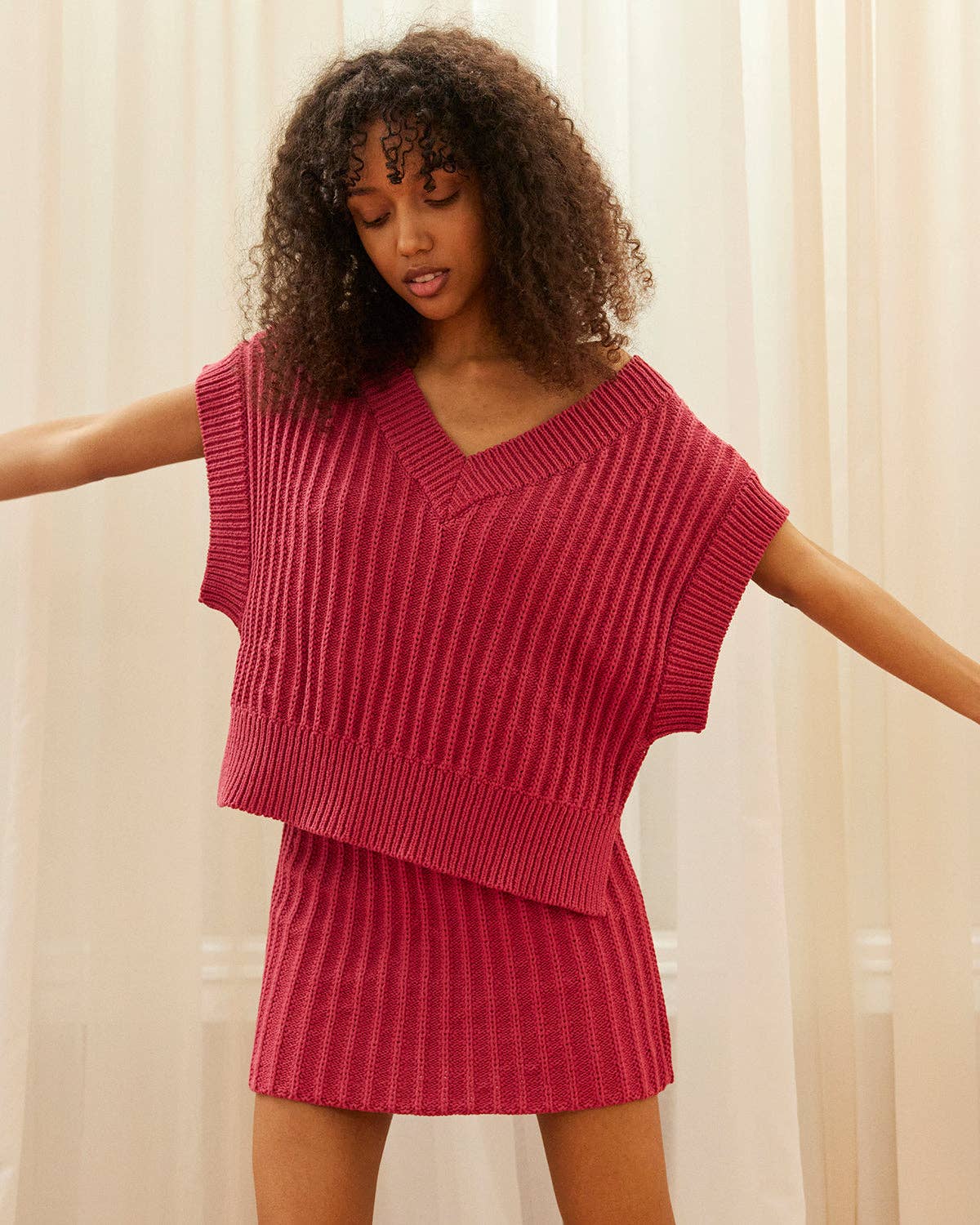Žiedas means "flower" in Lithuanian and the structured, V-neck Žiedas Vest was designed to bloom with all kinds of outfits. Designed as part of a matching set with our Lapas Mini Skirt, Žiedas blossoms through all seasons no matter what you pair it with.