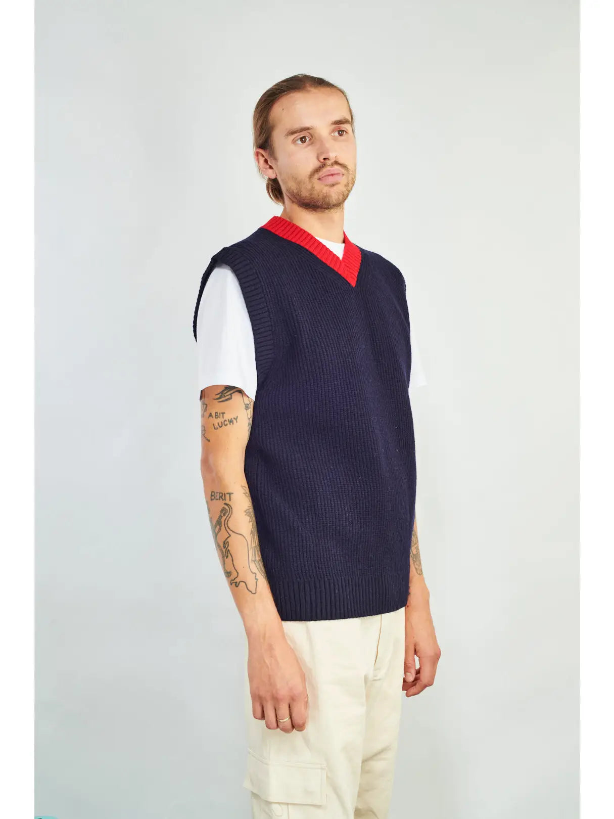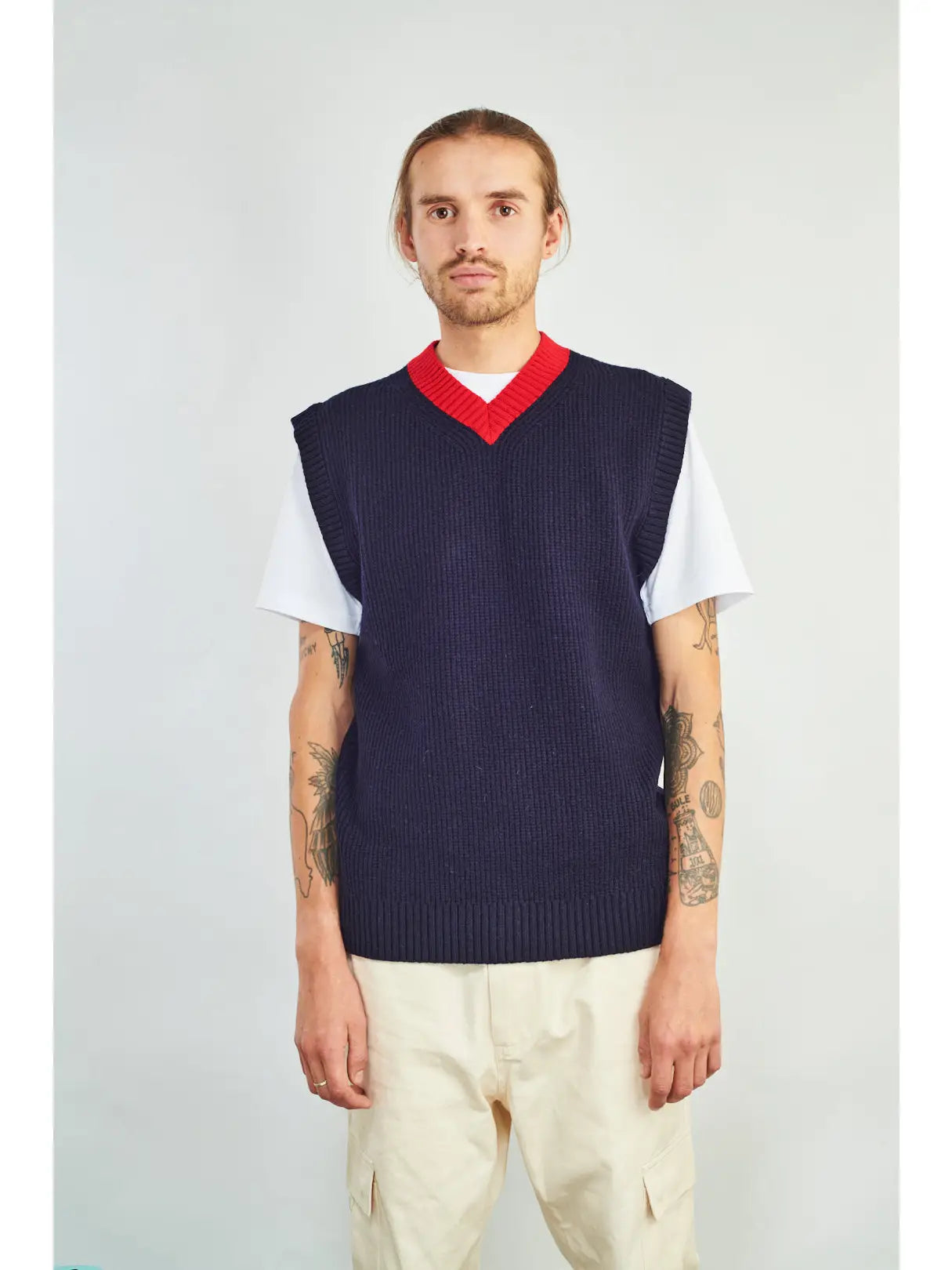 Cozy and stylish, this college vest is crafted in Country of Origin's incomparably soft lambswool. Hand linked by top-notch technicians in their British knitting factory, the piece comes in a timeless red and navy colourway. Ideal to layer through the chilly winter months and still look great as the temperature rises, this vest will give you a long-lasting, classic-meets-modern look.