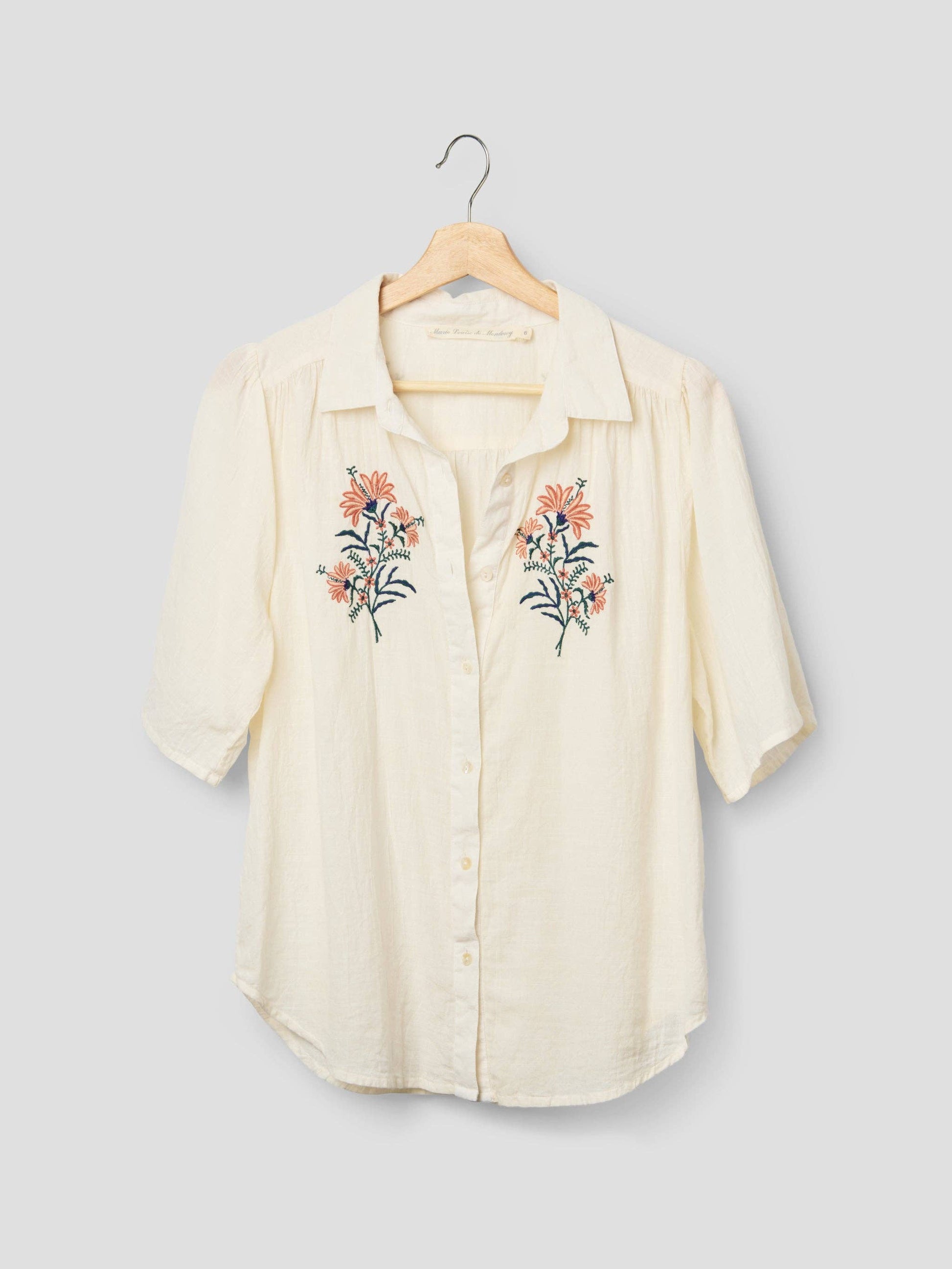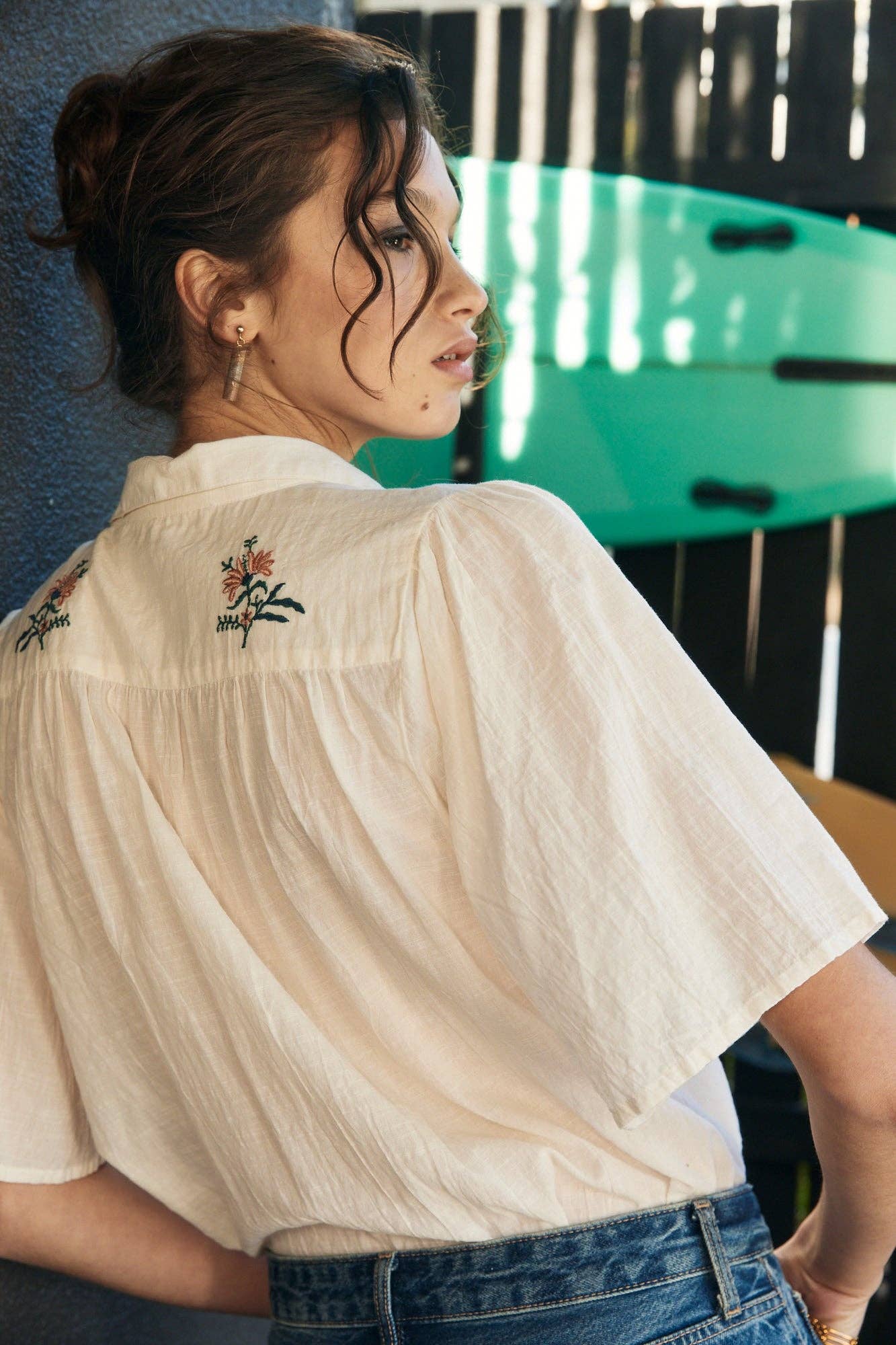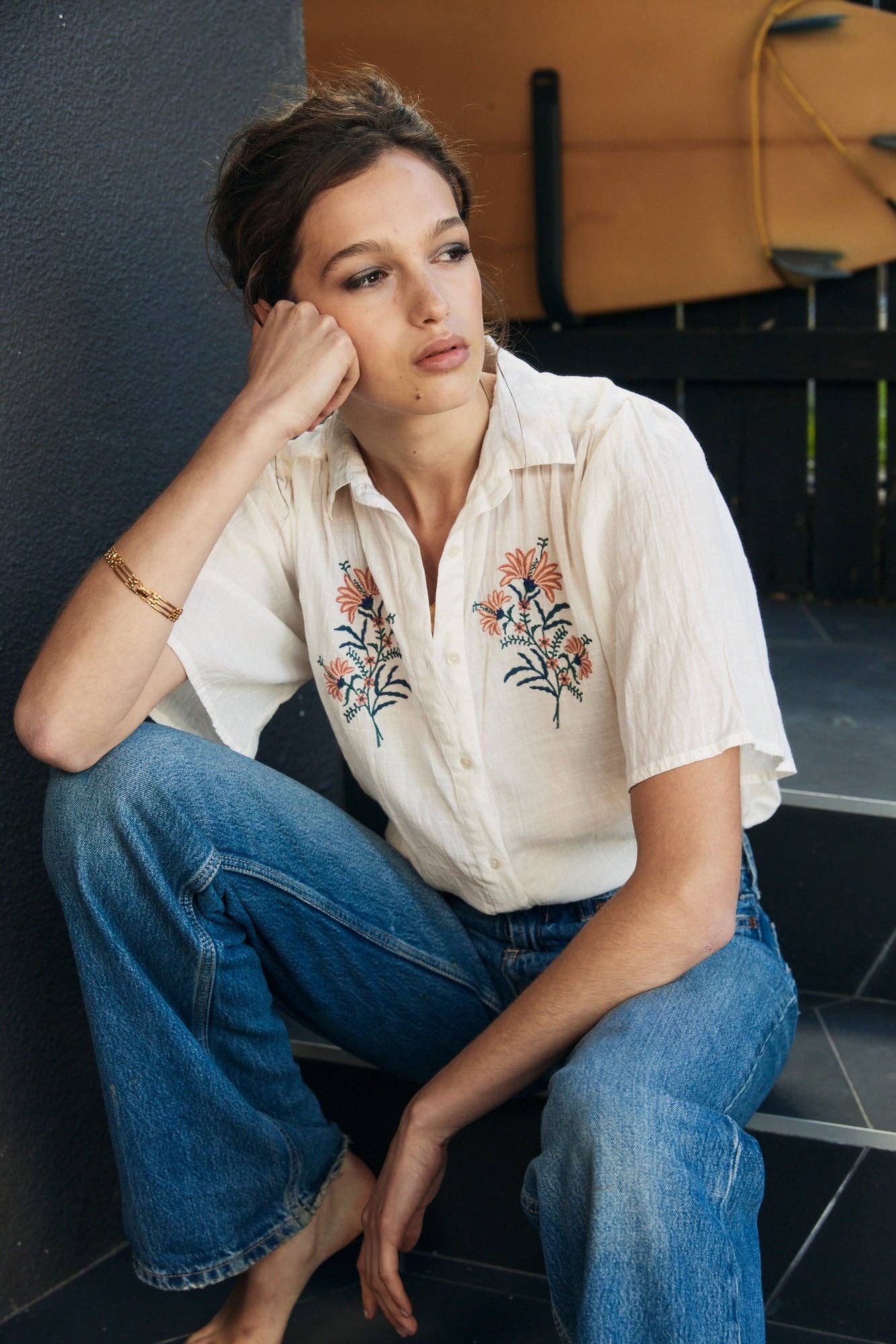 Unlock the vibrant energy of spring and summers with the Persanne Cotton Blouse. Breathable and airy, this blouse is perfect for easy layering and creating your own unique style! Featuring Turkish inspired embroidered flowers, short loose sleeves & a button down centre