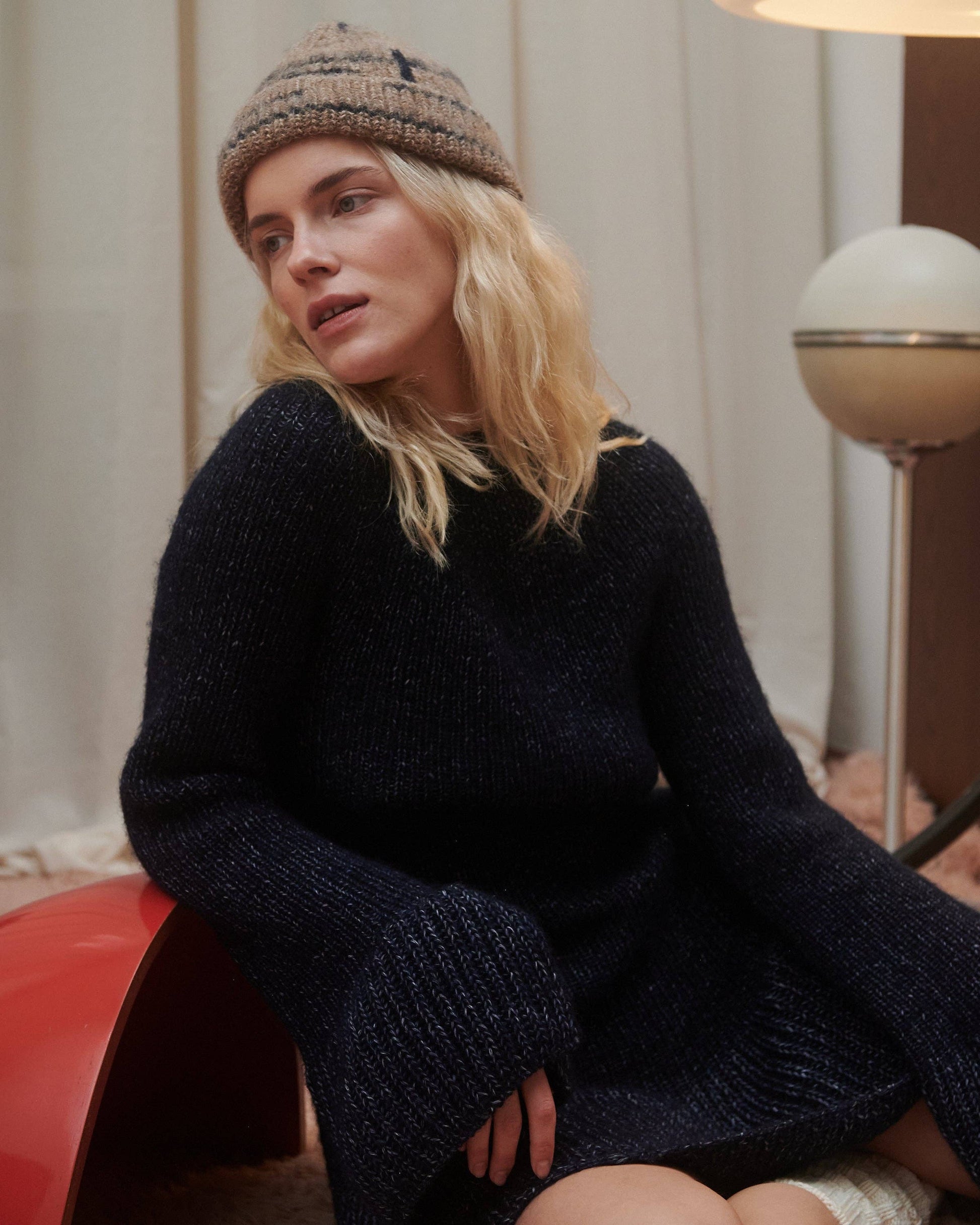 Raštų traces the roots of our Baltic culture, with simple tonal lines traditionally used in ethnographic works in the region. It's perfectly oversized and promises to keep you twice as fluffy, fuzzy and impossibly warm. Each piece features hand embroidery using leftover yarn, hence no two pieces are ever identical.